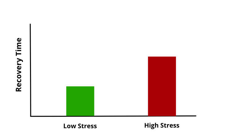 For example, according to the Journal for Strength and conditioning research, chronic stress can increase double your recovery time from 48 to 96 hours (6).