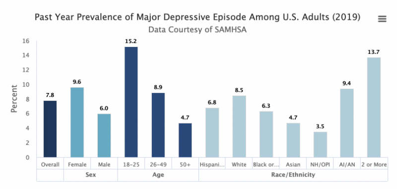 Most depressed people in the U.S. are between 18-25 years.