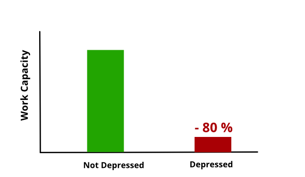 A study in the journal of Clinical Psychiatry shows a whopping 80% decrease in work capacity compared to people of the same age.