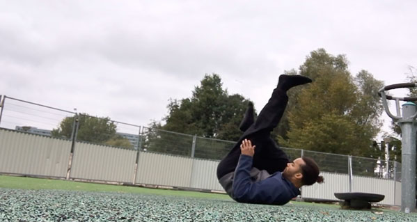 4) For the eccentric part, slowly get back to your sitting position by doing only the downward part of the pistol squat in a 5-10 second count until you can get back into the roll.